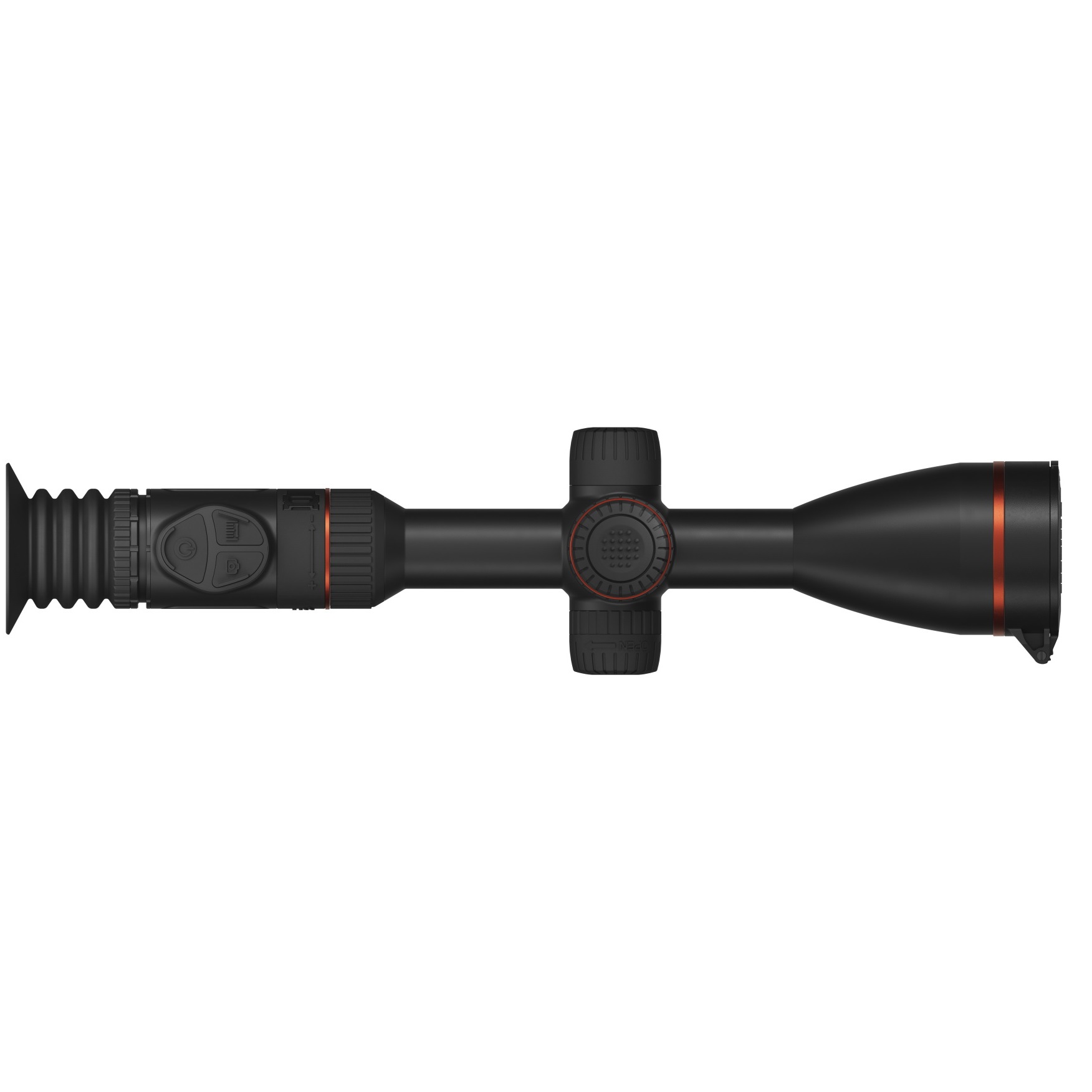 Поле зору приладу становить 8.8×7°, що відповідає лінійному огляду 15.4×12.3 м на дистанції 100 метрів. Такий показник забезпечує впевнений контроль території, а дальність виявлення людини досягає 2600 метрів. Комфорт під час стрільби підвищує винос вихідної зіниці 60 мм і зручне центральне кільце фокусування. Фірмова система калібрування ThermTec AI із беззатворною технологією усуває паузи та сторонні звуки, зберігаючи безперервне спостереження.