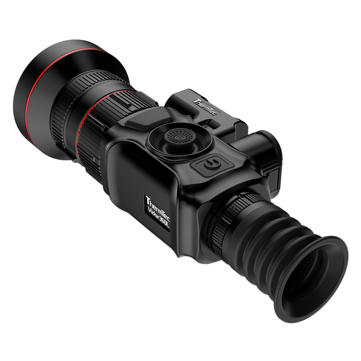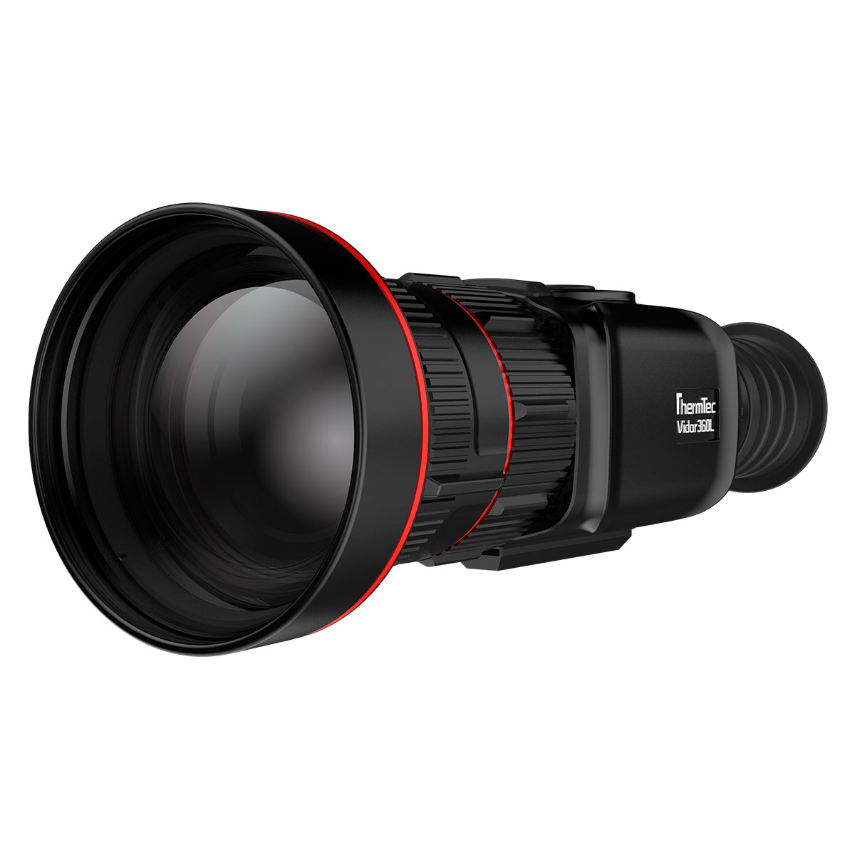 Потужний тепловізійний приціл ThermTec Vidar 360L має унікальну систему подвійного поля зору та може виявляти людину на відстані до 3000 метрів. На об'єктиві тепловізора присутній перемикач режиму із широкого поля зору (20 мм) на вузьке поле зору (60 мм) та навпаки. Головна відмінність від моделі ThermTec Vidar 360 – це наявність вбудованого лазерного далекоміра з балістичним калькулятором (до 1200 м).