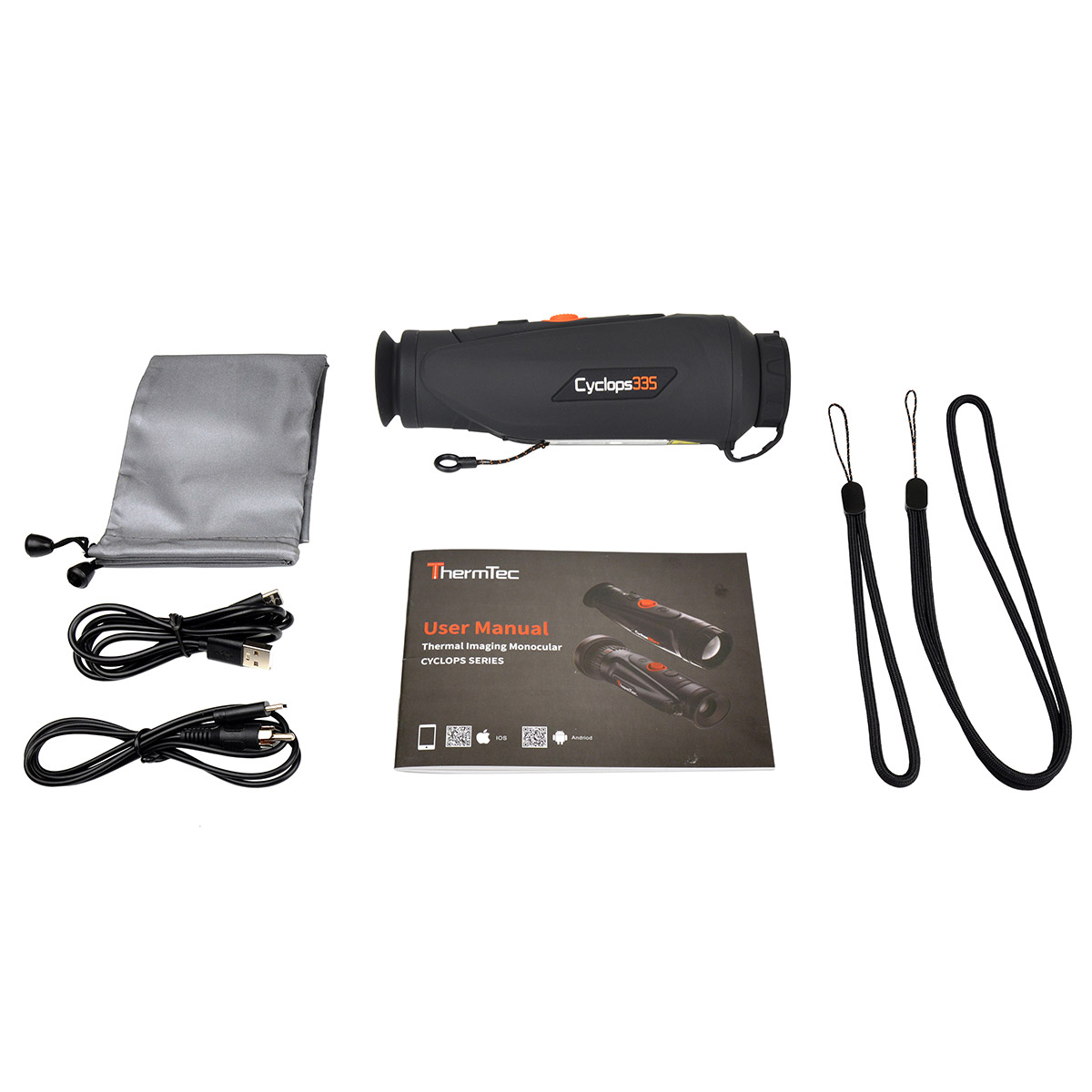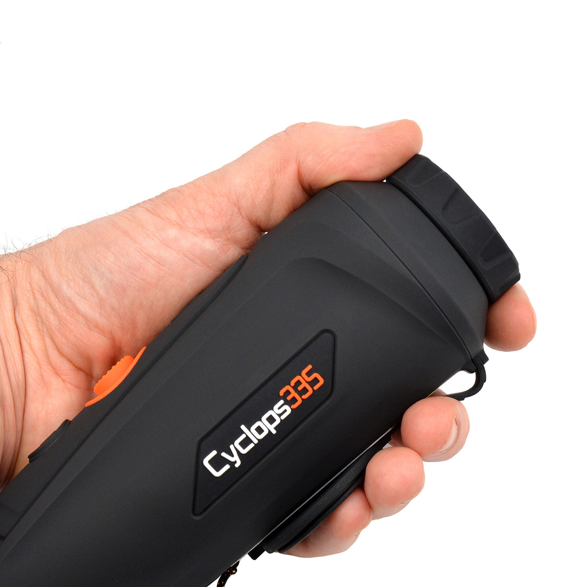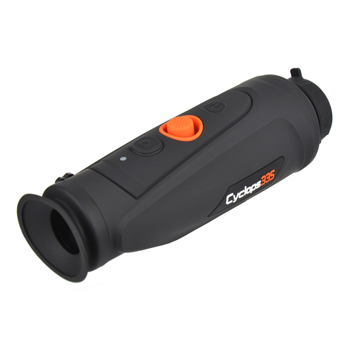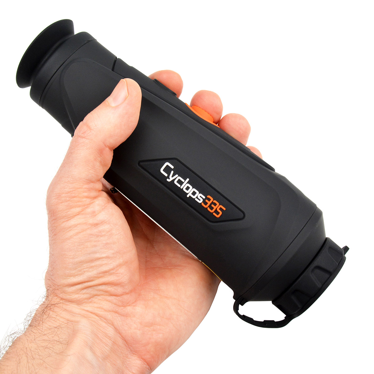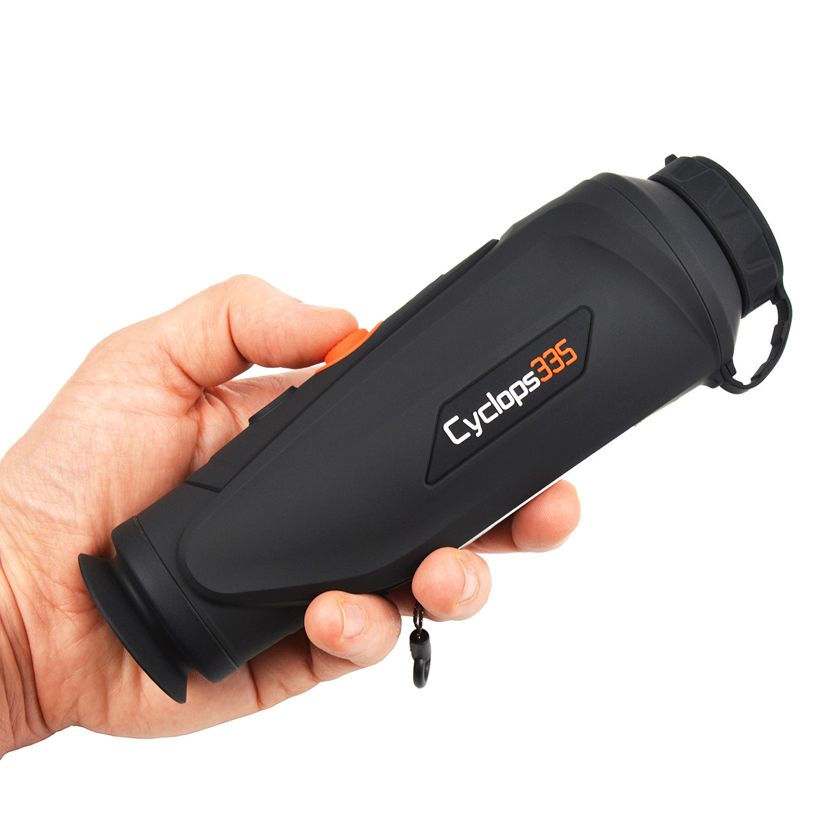 ThermTec (ThermEye) Cyclops 335 – це висококласний тепловізійний монокуляр з серйозними оптико-електронними характеристиками, призначений для широкого спектра застосування. Модель вирізняється сучасною матрицею 384x288 пікселів, яка поєднується з універсальним 35-мм об'єктивом. Тепловізор має середній кут зору і порівняно високу оптичну кратність, чого буде достатньо для більшості видів спостережень. Лінійне поле зору на 100 м по горизонталі та вертикалі становить відповідно 13.1 x 9.8 метрів. Для детального вивчення віддалених об'єктів передбачено плавний цифровий зум з шестикратним збільшенням.
