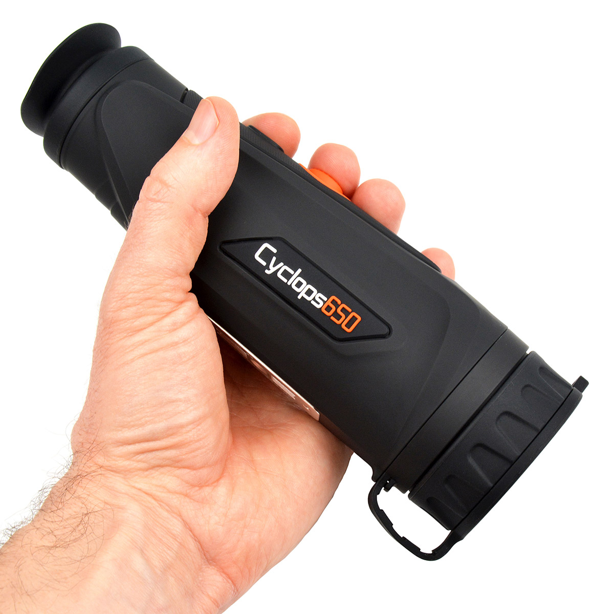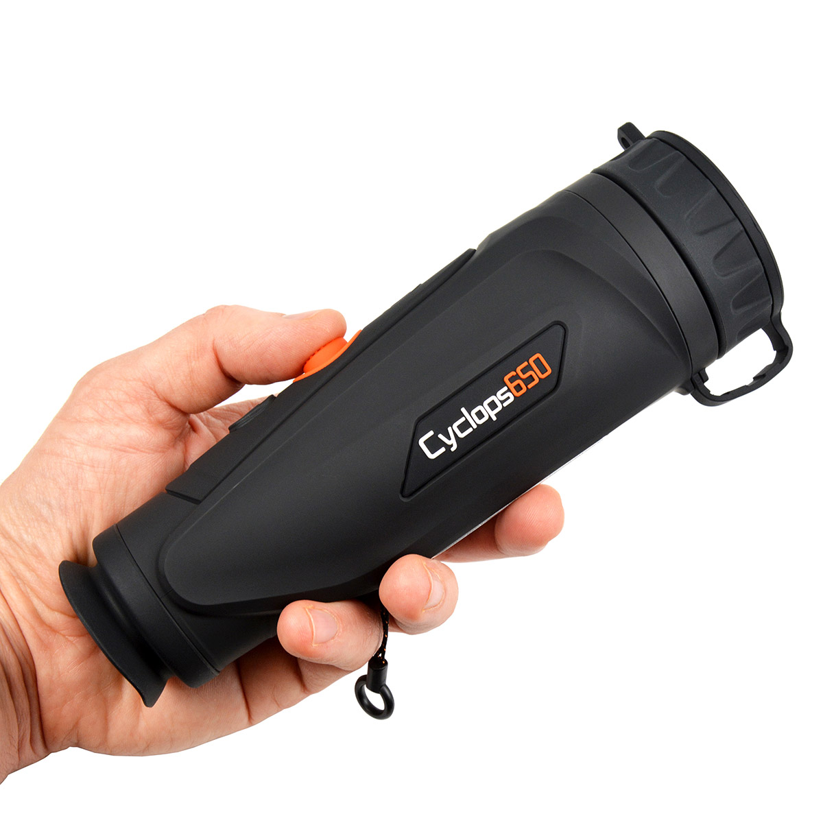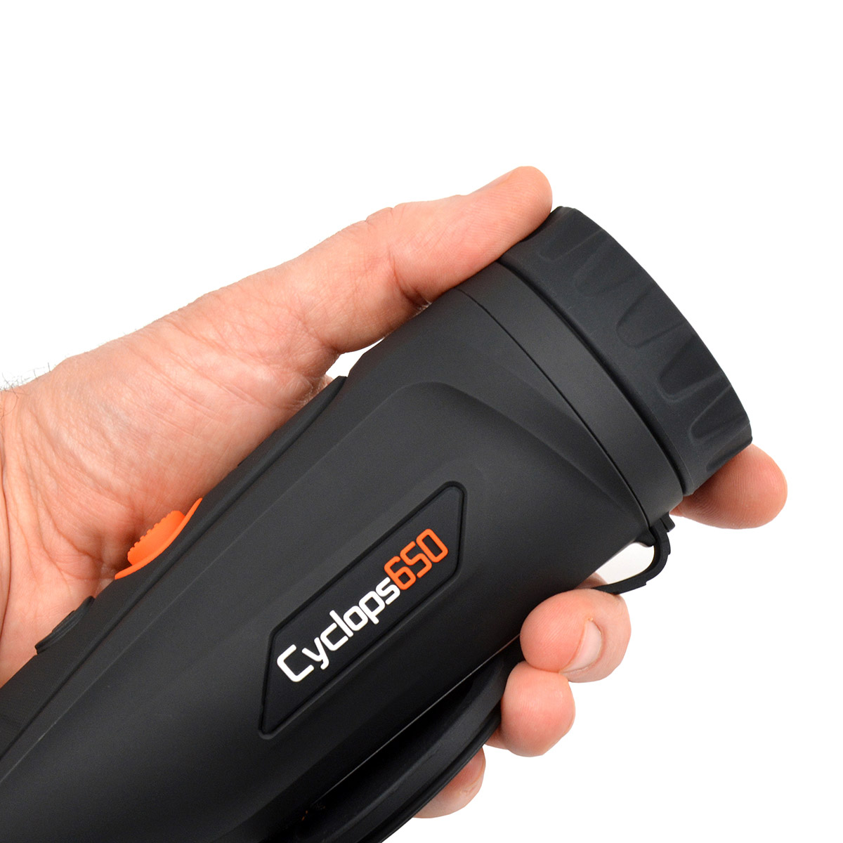 ThermTec (ThermEye) Cyclops 650 – це флагманський тепловізійний монокуляр високої чіткості, який пропонує першокласні експлуатаційні показники. Сучасна матриця роздільною здатністю 640х512 пікселів працює у довгохвильовому інфрачервоному спектрі (8-14μm), та здатна фіксувати мінімальні перепади температур. Потужний 50-мм об'єктив відрізняється максимальною дальністю дії серед усіх монокулярів серії, зберігаючи при цьому комфортний кут зору. Лінійне поле зору на 100 м по горизонталі та вертикалі становить відповідно 15.4 x 12.2 метрів. Тепловізор однаково добре підходить як для спостережень на протяжні відстані, так і для виявлення джерел тепла на максимальних дистанціях. Для більш детального вивчення віддалених об'єктів передбачено високоякісний цифровий зум з плавним збільшенням.
