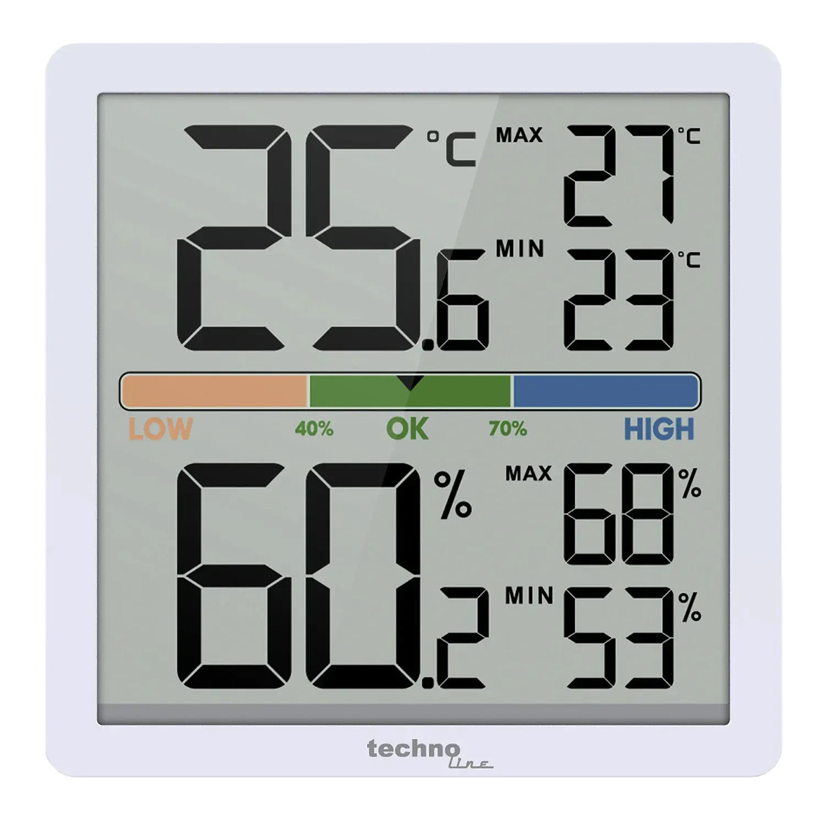 Термогігрометр Technoline WS9472 White – компактний і надійний прилад для контролю мікроклімату в приміщенні. Він вимірює температуру та вологість, допомагаючи підтримувати комфортні й здорові умови для життя чи роботи.