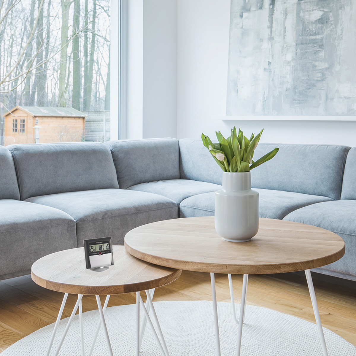 На чіткому монохромному дисплеї одночасно відображаються поточні значення температури, вологості та точки роси – температура, при якій волога починає конденсуватися, що є одним із факторів ризику утворення цвілі. При перевищенні критичного рівня вологості термогігрометр подає звуковий та візуальний сигнали, попереджаючи про ризик появи плісняви. Завдяки цьому ви зможете вчасно відреагувати та зберегти здорове середовище проживання. Також передбачена функція відображення максимальних та мінімальних значень показників з моменту останнього скидання.