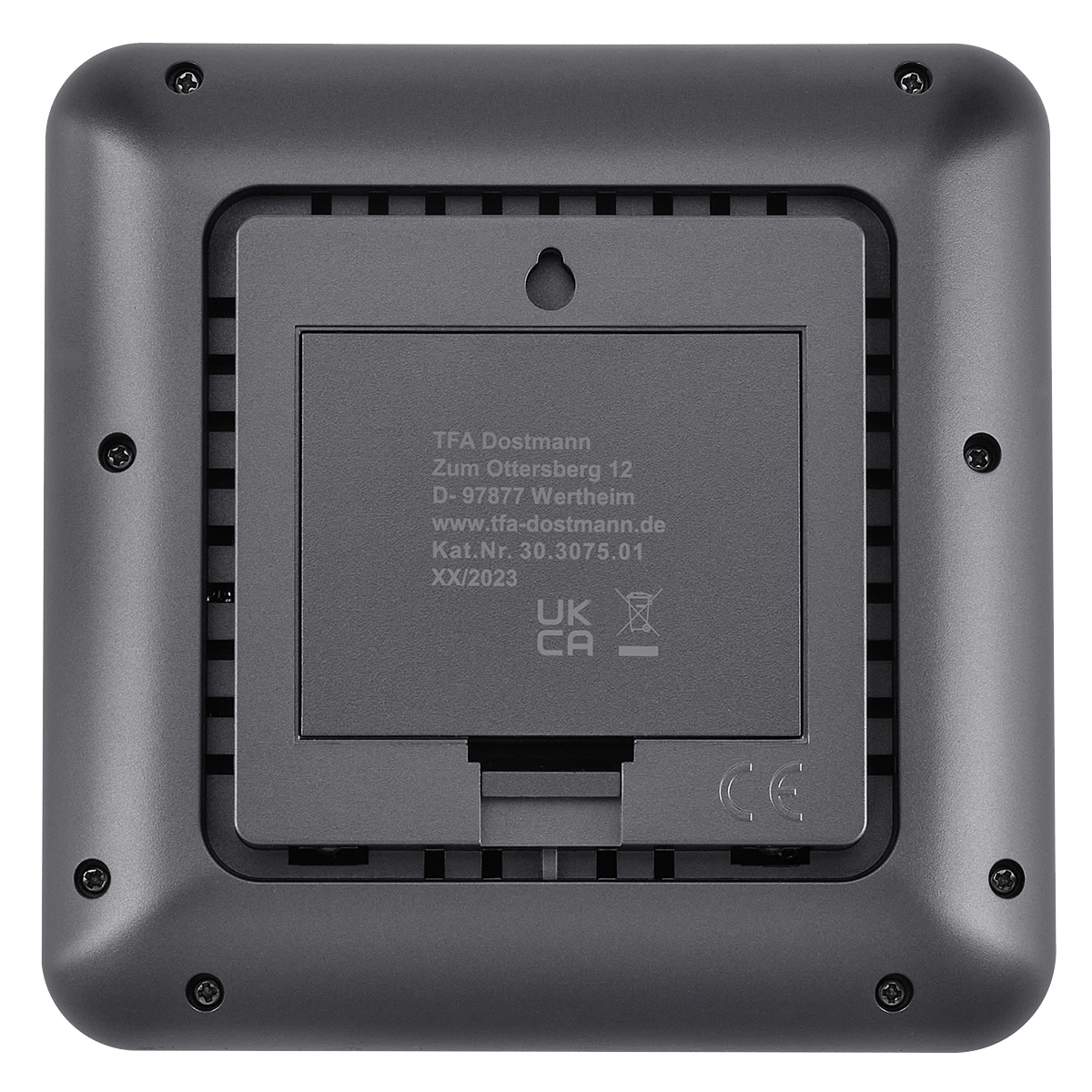 Термогігрометр TFA Klima@Home 2 працює від батарейок (не входять до комплекту) і може бути встановлений на стіл за допомогою знімної підставки або закріплений на стіні.