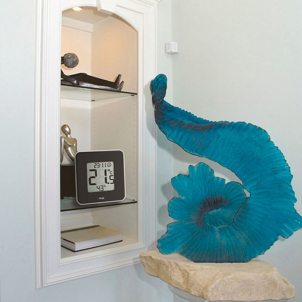 Термогігрометр TFA Style Black – стильний та функціональний прилад для контролю мікроклімату всередині приміщення. Він дозволяє легко стежити за температурою та відносною вологістю, чим допомагає підтримувати комфортні умови і запобігти ситуаціям, коли повітря занадто сухе або надто вологе, що може негативно вплинути на здоров’я, рослини або сприяти появі плісняви.