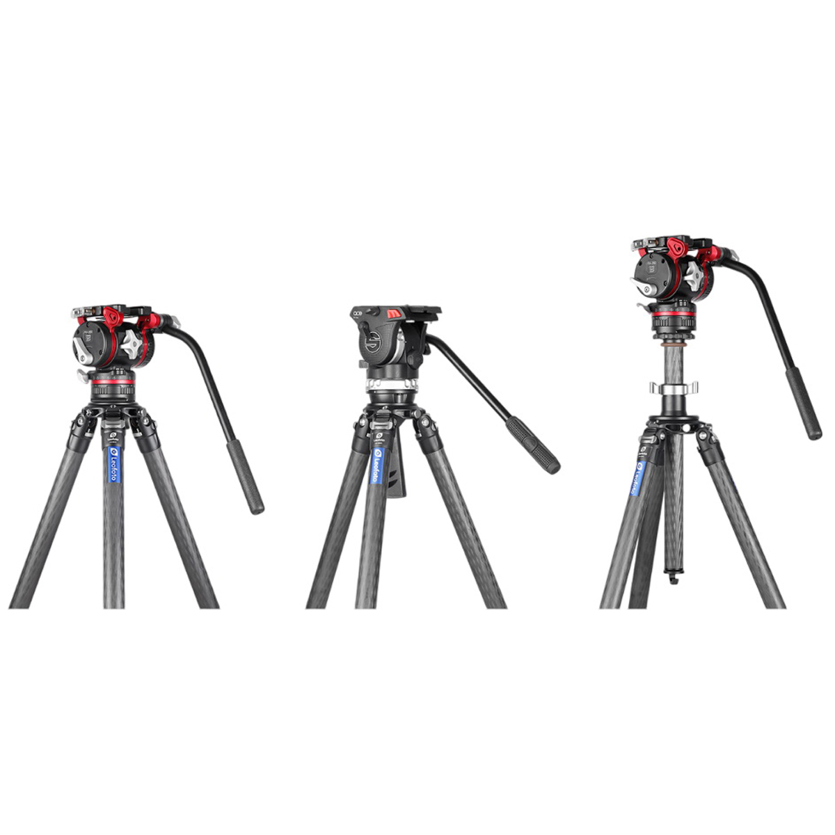 Ноги та основні елементи виконані з 10-шарового карбону (вуглецевого волокна), це забезпечує поєднання низької ваги, високої міцності та ефективного поглинання вібрацій. Для зручності роботи на верхній платформі інтегрований точний бульбашковий рівень, який допомагає швидко вирівняти горизонт. Конструкція ніг передбачає можливість легкої заміни наконечників: у комплекті постачається як класичні гумові п'ятки для роботи на твердих та делікатних поверхнях, так і міцні сталеві шипи для надійної фіксації на м'якому ґрунті, льоду чи скелястій місцевості. При власній вазі всього 1.82 кг, трипод здатний витримувати максимальне навантаження до 25 кг, роблячи його придатним для роботи з важкими кінокамерами, великоформатними камерами або довфокусними телеоб'єктивами.
