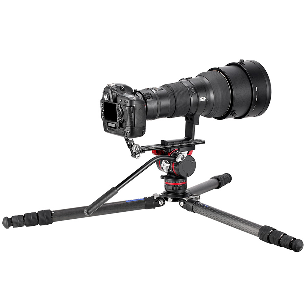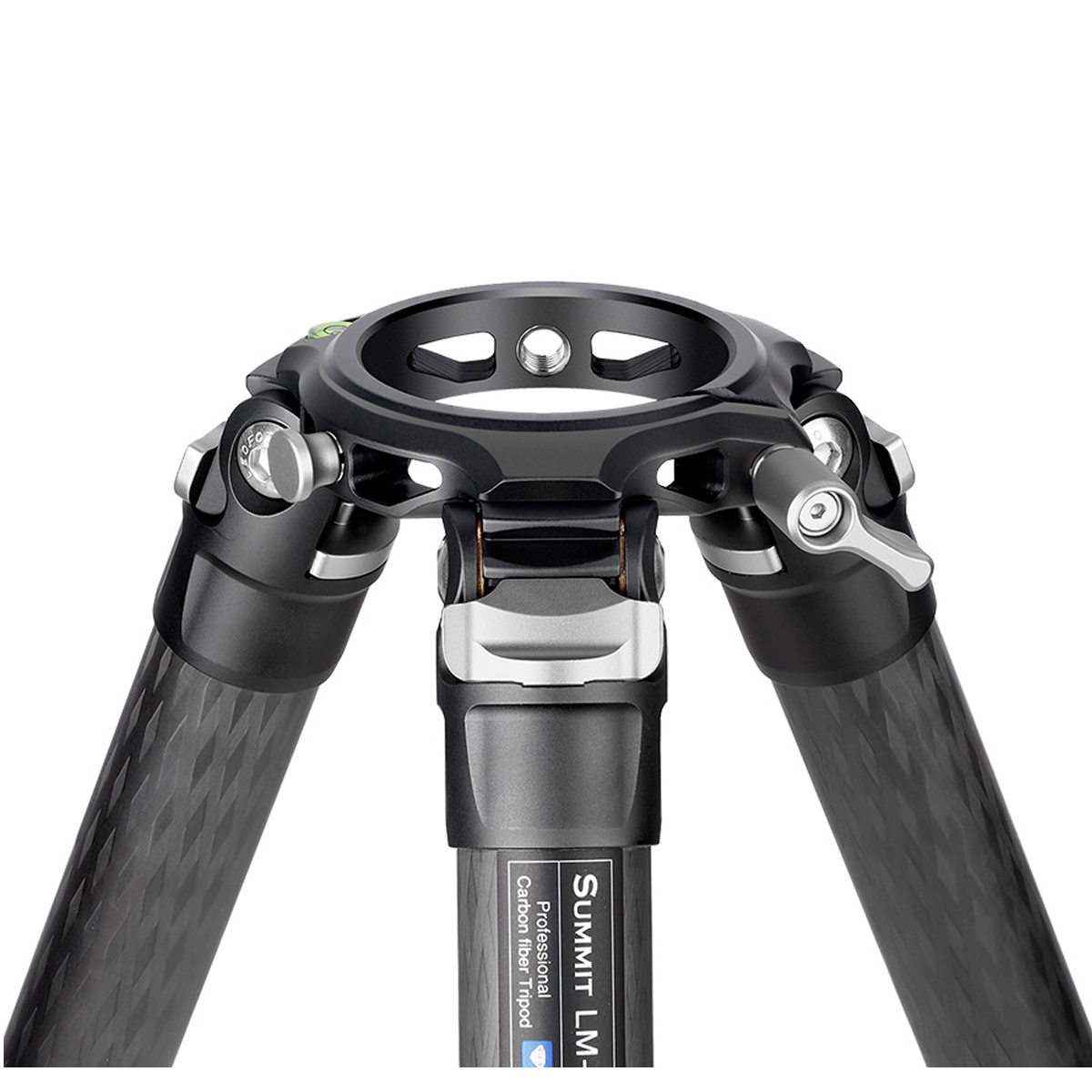 Ноги та ключові елементи трипода виготовлені з 10-шарового карбону, що поєднує міцність, низьку вагу та ефективне поглинання вібрацій. На верхній платформі розміщено бульбашковий рівень для оперативного вирівнювання горизонту. Наконечники ніжок можна замінювати залежно від умов: у комплекті є як гумові п’ятки для рівних і делікатних поверхонь, так і сталеві шипи для ґрунту, льоду чи кам’янистої місцевості. При вазі лише 2,05 кг штатив витримує навантаження до 30 кг, роблячи його повноцінною опорою для важких кінокамер, великоформатних систем та довгофокусної оптики.