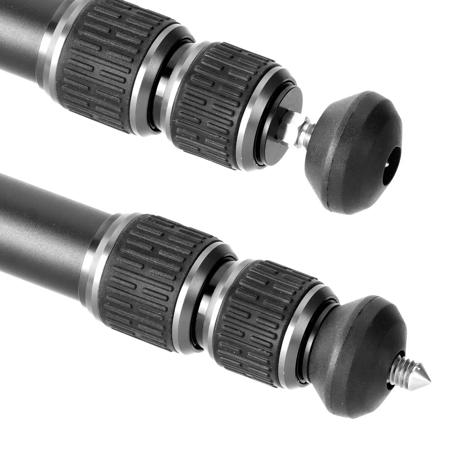 Конструкція складається з трьох секцій із системою фіксації Quick-twist Lock, що дозволяє швидко змінювати висоту та адаптувати трипод до різних умов використання. Діапазон висоти в робочому положенні становить від 21,5 см до 174 см, що дає змогу використовувати трипод у положеннях лежачи, сидячи та стоячи. Ніжки мають три варіанти кутів нахилу (23°, 50° і 80°), що забезпечує високу стійкість на будь-якій поверхні. Завдяки змінним гумовим і сталевим наконечникам трипод надійно тримається навіть на слизьких або нестійких покриттях.