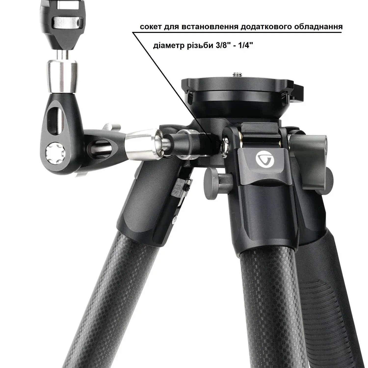 Для додаткової функціональності передбачено різьблення для кріплення консольного тримача, який дозволяє встановлювати додаткове обладнання, таке як ліхтарі, далекоміри та інше. Крім того, знімний гак для підвішування вантажу сприяє додатковій стабілізації штатива, що особливо важливо при роботі в вітряних умовах або при використанні важкого обладнання.