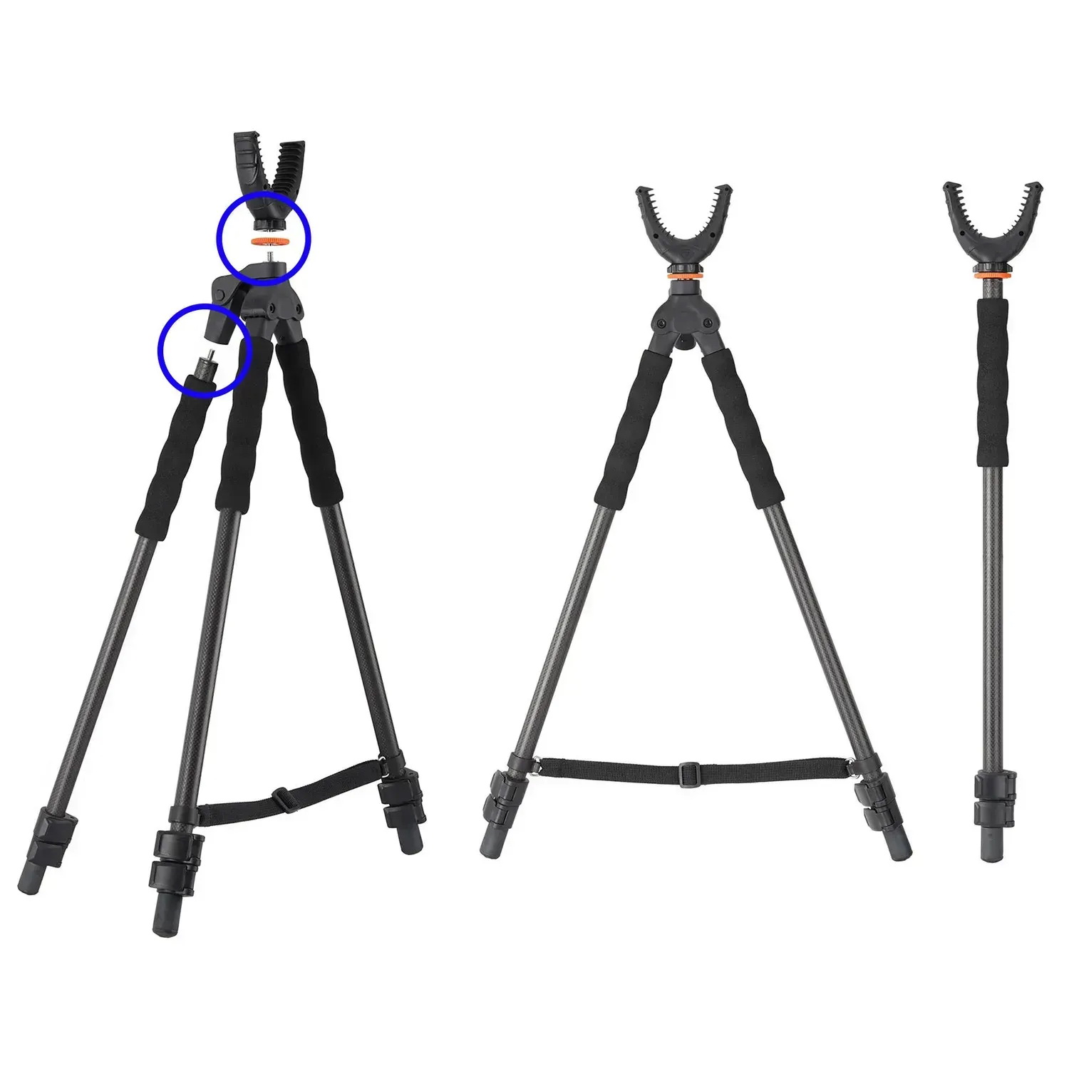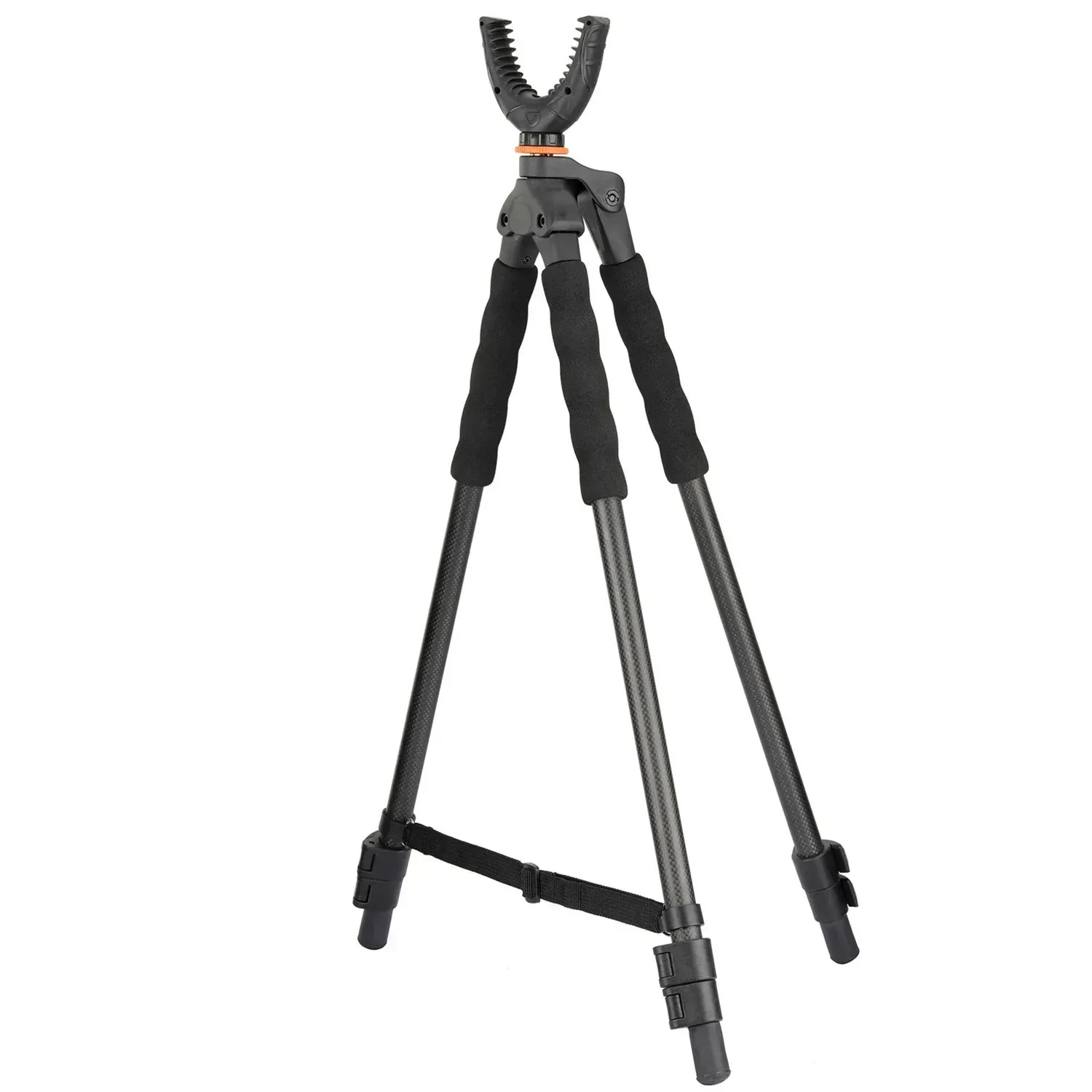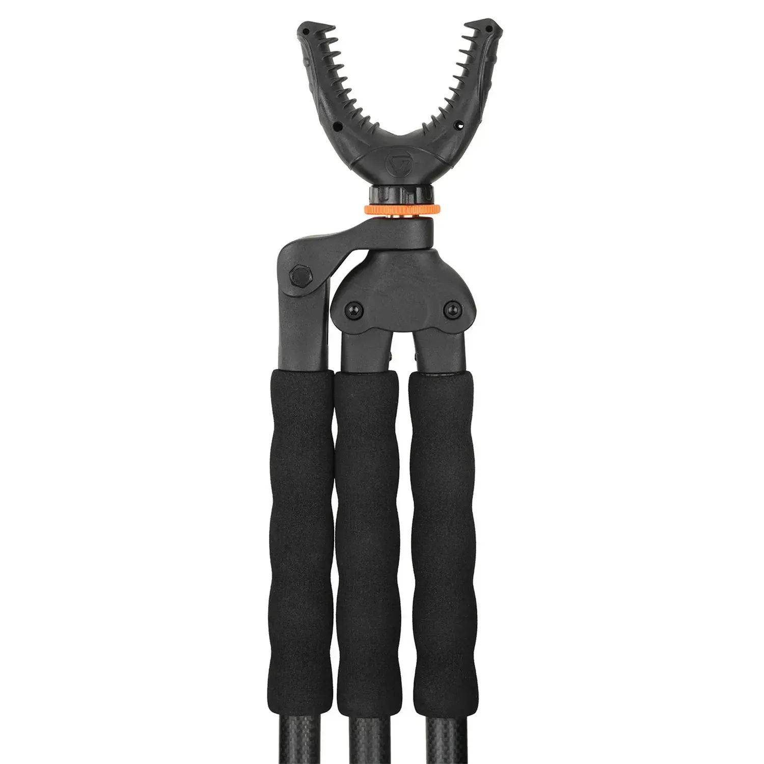 U-подібна вилка з гумовим рельєфним покриттям забезпечує надійне утримання зброї або іншого обладнання. Вона обертається на 360°, що дозволяє швидко та без зусиль змінювати напрямок прицілювання без необхідності переміщення сошки.