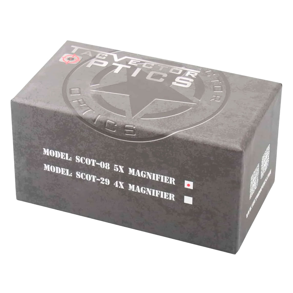 Vector Optics 5x magnifier (flip side mount) — ударостійкий і доступний прилад з 5-кратним збільшенням, який перетворить коліматор на повноцінний оптичний приціл одним рухом. Прицільну сітку можна центрувати за допомогою зручного механізму введення горизонтальних та вертикальних поправок.