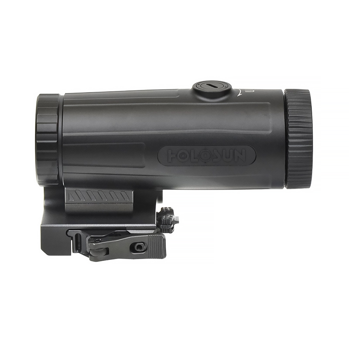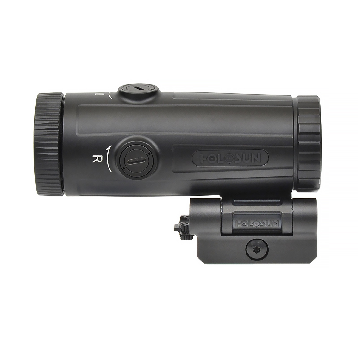 Holosun HM6X — це 6-кратний оптичний збільшувач (магніфер) для використання у парі з коліматорними прицілами різних типів, який забезпечує достатню кратність для прицільного вогню на середні дистанції. Подібне рішення найкраще підійде для статичних сценаріїв стрільби, особливо з використанням упорів або сошок. Окрім цього, збільшувач оснащено відкидною убік конструкцією flip-to-side, що дозволяє одним рухом переходити на мінімальне збільшення 1x, використовуючи тільки коліматорний приціл.