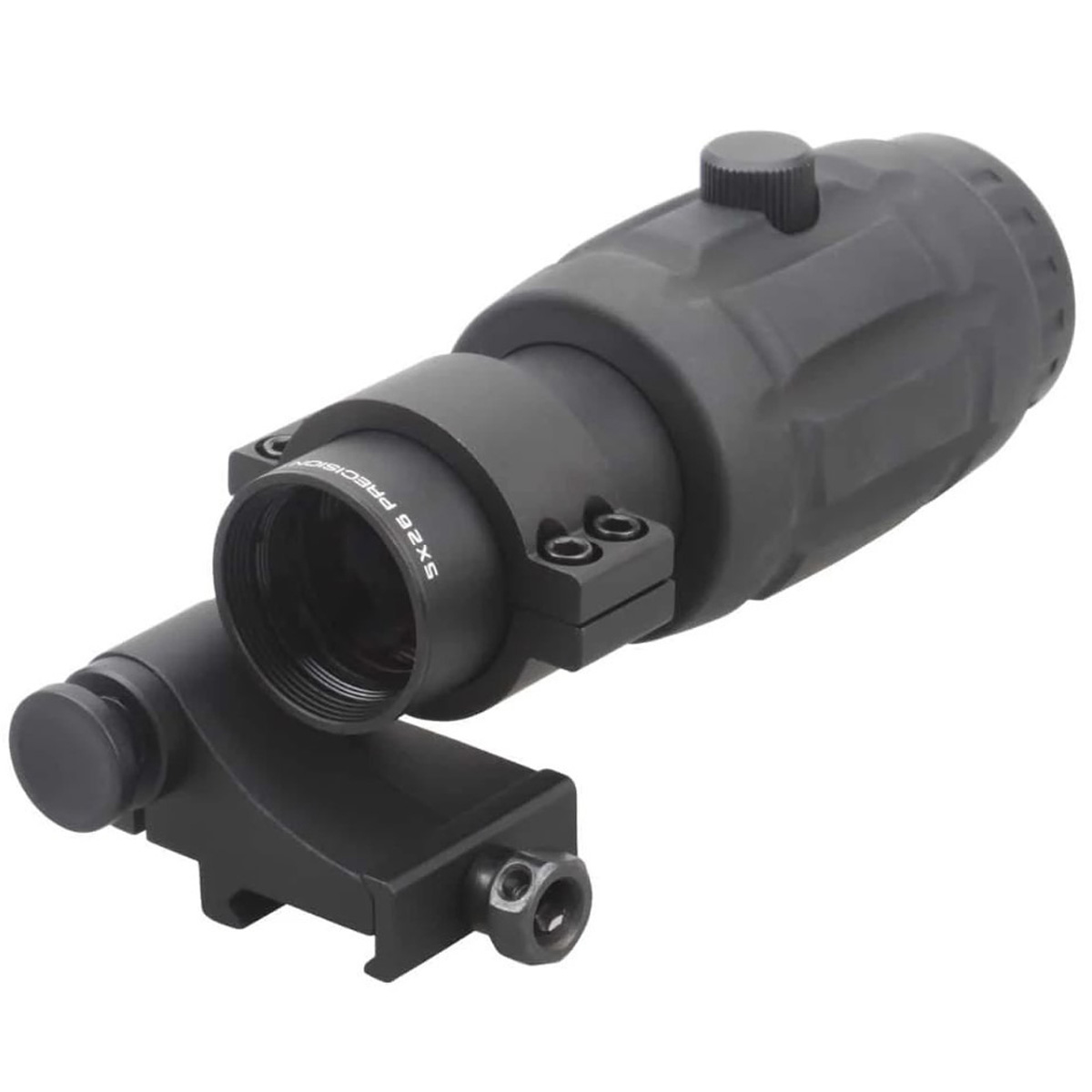 Оптична система магніфера забезпечує фіксоване 5-кратне збільшення, дозволяючи чітко ідентифікувати цілі та здійснювати більш точні постріли на відстанях, де можливостей коліматорного прицілу вже недостатньо. Діаметр об'єктива становить 26 мм, що є оптимальним для збору достатньої кількості світла та забезпечення яскравого зображення без значного збільшення габаритів пристрою. Лінзи мають повне багатошарове просвітлення (Fully Multi-coated), це мінімізує втрати світла, зменшує відблиски та пропонує високу контрастність і правильну передачу кольорів. Висота до центру оптичної осі становить 36 мм, забезпечуючи сумісність з більшістю популярних коліматорних прицілів, дозволяючи комфортно їх поєднувати на одній планці.